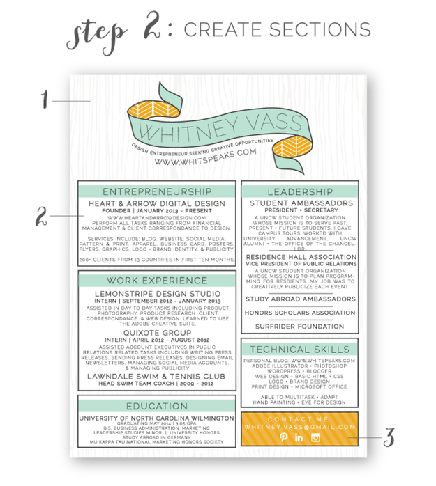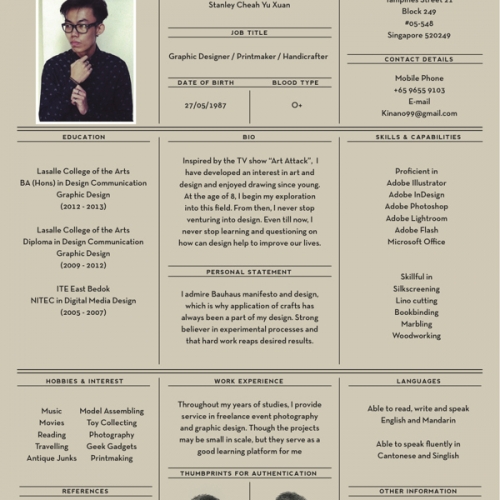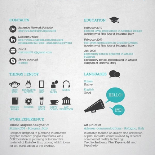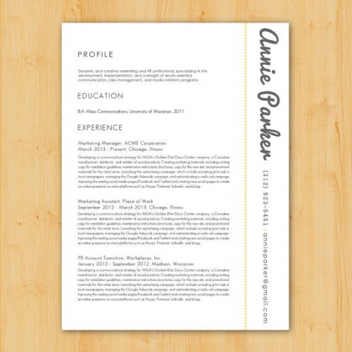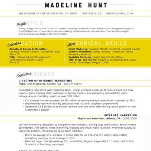 Vous devez trouvez le moyen de mettre clairement en une seule page toutes les informations qui vous concernent, afin que le recruteur puisse, en un seul coup d’œil, avoir une idée sur qui vous êtes.