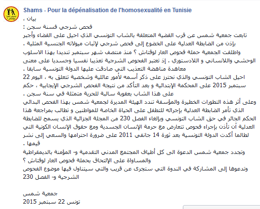 L’association Shams a également rejoint le mouvement en lançant une campagne sur Facebook, sous la forme d’un événement sous le titre « Non au test de la Honte » .