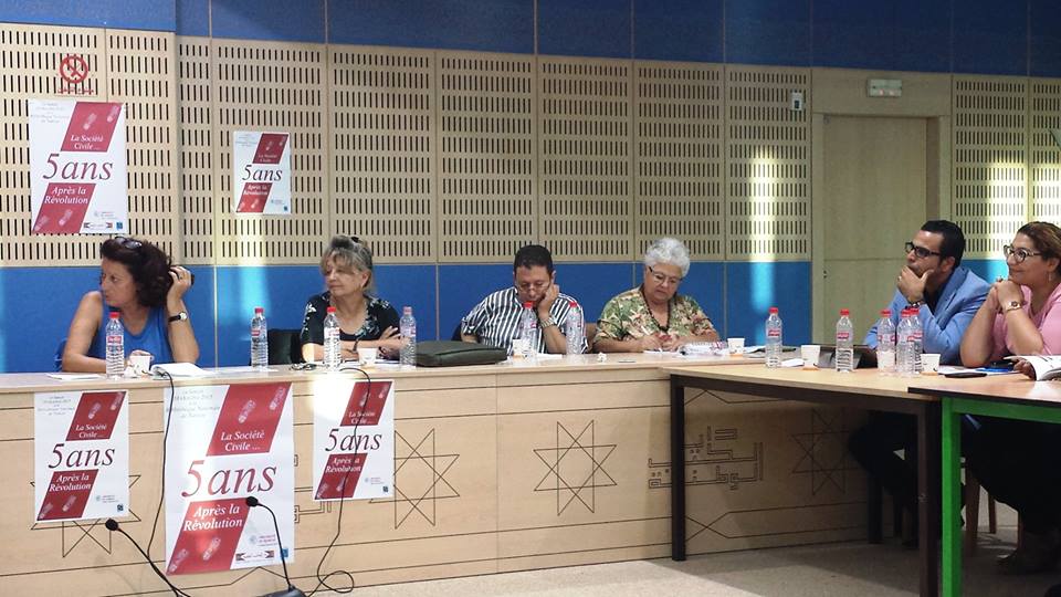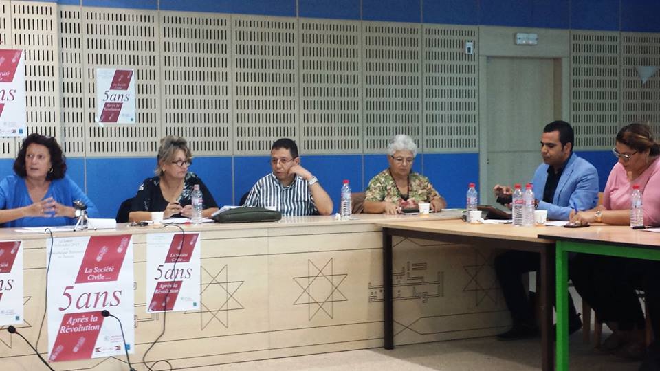 Des sociologues universitaires, des journalistes, des militants et représentants des organismes de la société civile à savoir de L’association Beity, l’ATFD, l’AFTURD, Amal pour la mère et l’enfant, Terre d’asile section Tunisie, l’association tunisienne de lutte contre le cancer, Groupe Tawhida pour la santé des femmes, le centre pour l’éducation civique, l’observatoire du forum social, Lab’ess, Atide, Mourakiboun, Ntalbek w Nhassbek de Dostourna, l’association de recherche sur les transitions démocratiques, l’ADLI et la FIDH ont été présents afin d’évaluer ensemble le fruit de ces cinq années de travail qui suivirent la révolution, de partager les difficultés et les obstacles qu’ils rencontrent, d’approfondir leurs connaissances les-uns des autres et de réfléchir aux défis stratégiques, économiques, sociaux et politiques qui se présentent à eux . Au cours de cette table ronde, plusieurs sujets ont été abordés et maintes problématiques ont été soulevées: