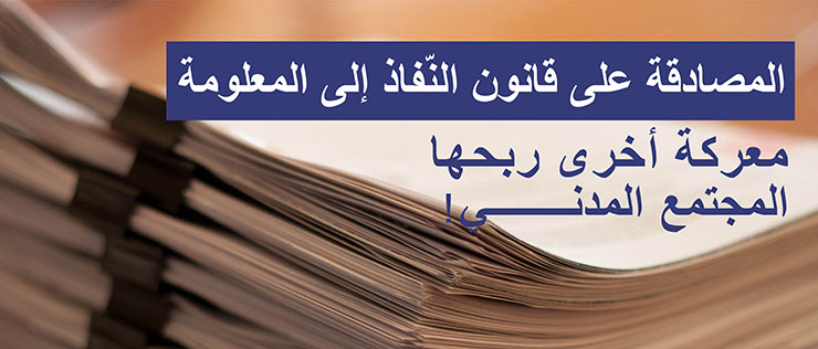 سجّل المجتمع المدني قبل أيّام أحد انتصاراته الكبرى منذ 14 جانفي 2011. فبفضل مساعي عدد من الجمعيات والمنظّمات، صادق مجلس نوّاب الشّعب في 9 مارس الجاري على القانون الأساسي المتعلّق بالنّفاذ إلى المعلومة بعد إدخال تعديلات عليه أكثر ملاءمة للدستور واستجابة لتطلّعات التونسيين من صحفيّين ونشطاء مجتمع مدني وعامّة المواطنين.