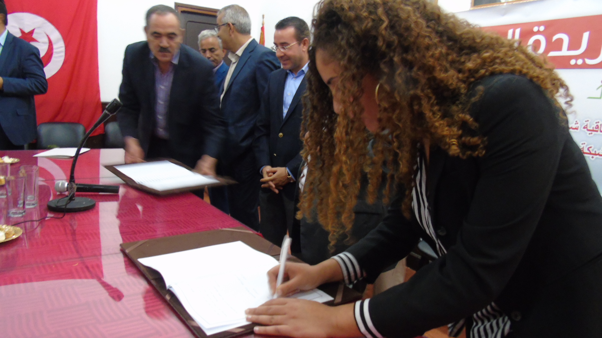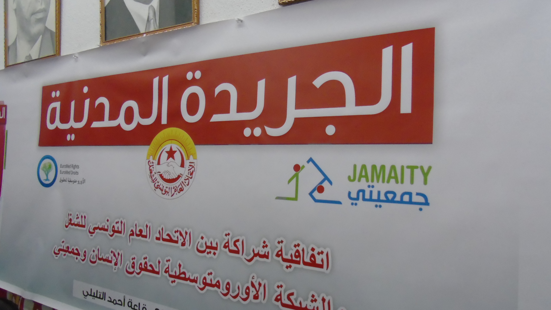 بحضور كلّ من السيد الامين العام للاتحاد العام التونسي للشغل حسين العباسي و رئيس الشبكة الأورومتوسطية لحقوق الإنسان بتونس السيد رامي الصالحي والمديرة التنفيذية لجمعيتي السيدة نور الكعبي, تم يوم الإربعاء 16/11/2016 توقيع اتفاقيّة تعاون تتمحور حول مساهمة المجتمع المدني في تأثيث محتوى « الجريدة المدنية » .