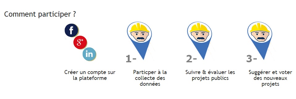 Sous le slogan « عينك عالشانطي » ou « Aie un œil sur le chantier », Cabrane.com offre au citoyen un espace d’échange et de participation en l’invitant à réagir aux informations partagées, dénoncer les abus et les dérèglements et à proposer de nouveaux projets. L’utilisateur est invité à s’inscrit sur la plateforme, contribuer à la collecte des données, suivre et évaluer les projets existants, ou encore choisir et proposer des nouveaux projets.