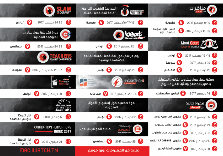 A l’occasion de « la Journée Internationale de Lutte Contre la Corruption » le 9 décembre, I Watch organise la 5ème édition du « Mois Contre la Corruption » du 9 décembre 2017 au 14 janvier 2018.