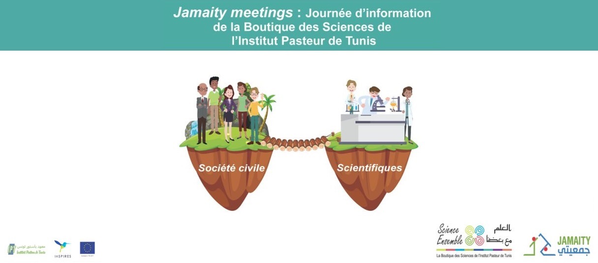 Dans le cadre de Jamaity Meetings, l’Institut Pasteur de Tunis IPT et Jamaity ont organisé une journée d’information sur les activités de « Science Ensemble », la Boutique des Sciences de l’IPT au profit des associations et des scientifiques.