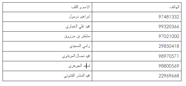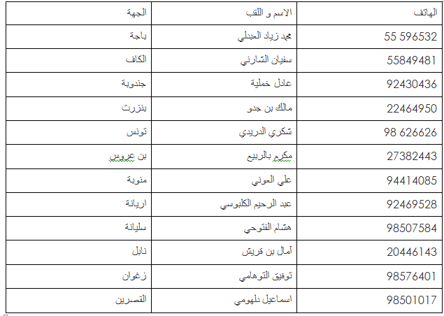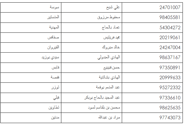في صورة ما لم یكن لكم ارقام اتصال، سنضع على ذمتكم في الأیام القادمة قائمة في نقاط الاتصال ف كل لجنة.