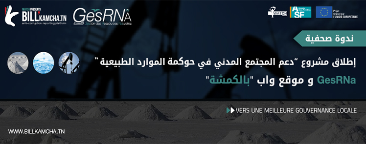 تتشرف منظمة « أنا يقظ » نقطة الاتصال الرسمية لمنظمة الشفافية الدولية و منظمة محامون بلا حدود بدعوتكم لحضور إطلاق مشروع « دعم المجتمع المدني في حوكمة الموارد الطبيعية » GesRNa وإطلاق موقع واب « بالكمشة »