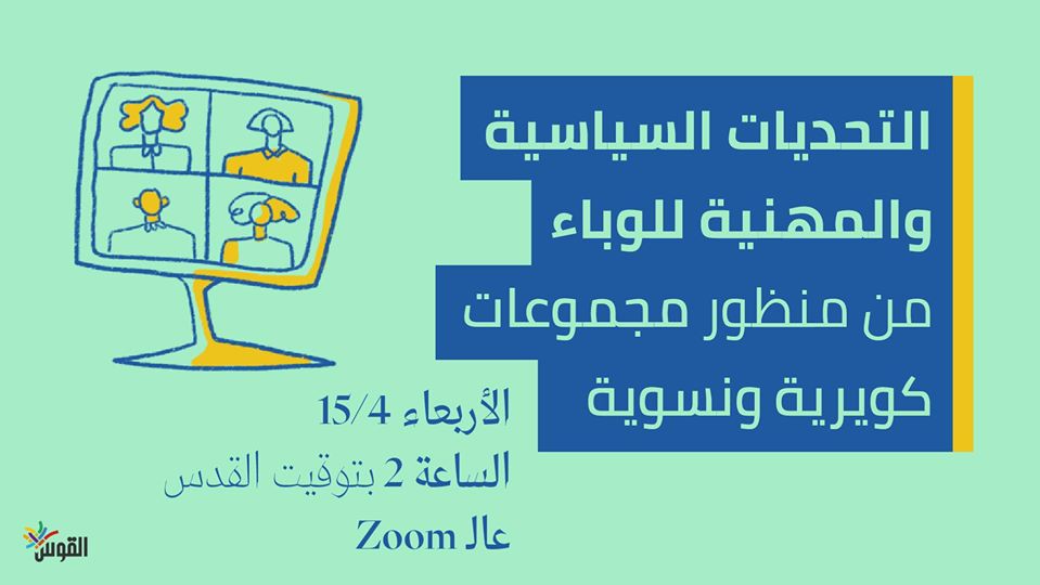 إدراكًا منا لهذا الوضع المركب، وانطلاقًا من مسؤوليتنا السياسيّة والمعرفية بمشاركة تجاربنا ومعرفتنا، تسرّنا دعوتكنّ/م للانضمام لنا في لقاء عن بعد حول الأسئلة والقضايا السياسية والمهنية التي تلحّ علينا هذه الفترة كمجموعات ومؤسسات نسوية وكويرية؛ ما هو أثر الوباء على أشخاص يعيشون توجهات جنسية وجندرية مختلفة ومجموعات أخرى مهمّشة؟ كيف يتكثّف قمع الدولة وسياسات ضبطها لجنسانيّتنا وأجسادنا استغلالًا للوضع القائم؟ كيف نستمر في العمل كمجموعات نسوية وكويرية وما الذي يجدر بنا فعله؟ وأسئلة وأفكار كثيرة غيرها نشارككنّ/م بها.
