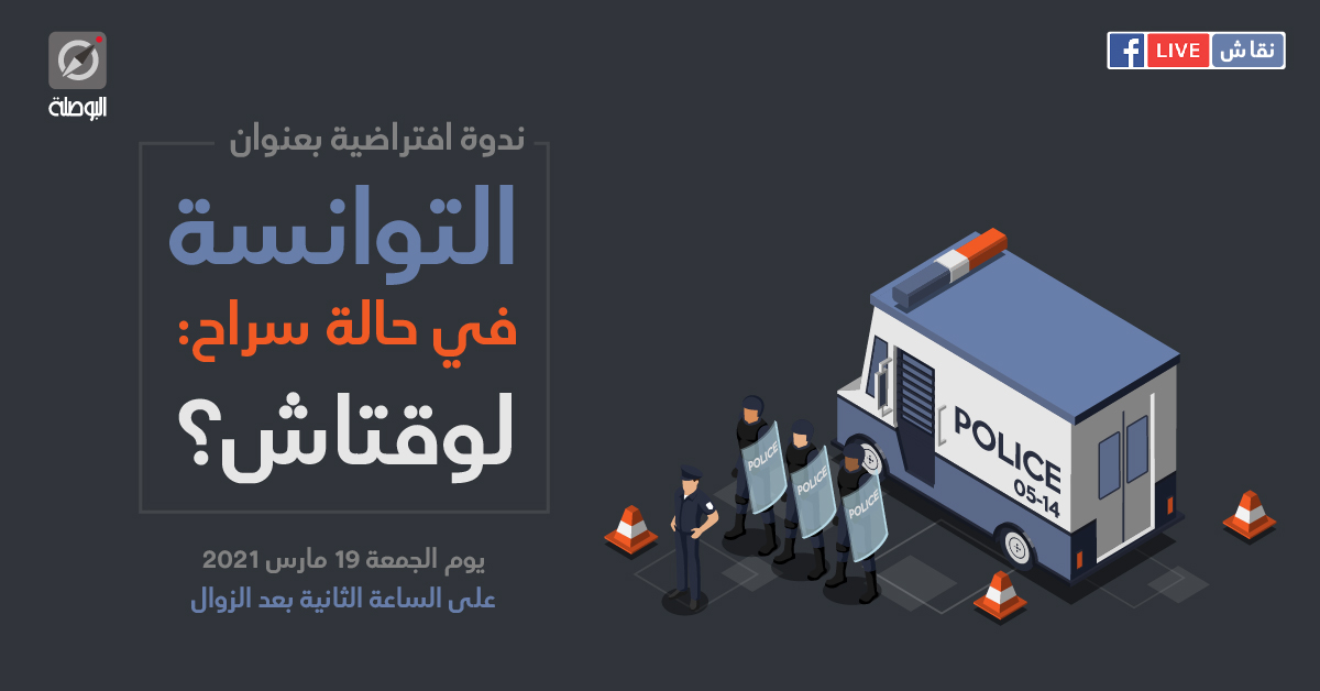 تتشرف منظمة البوصلة بدعوتكن/م لمتابعة نقاش مباشر حول المؤسّسة الأمنية، علاقتها مع المواطن وسبل اصلاحها، تحت عنوان توانسة في حالة سراح: لوقتاش؟ وذلك يوم الجمعة 19 مارس 2021 على الساعة الثانية بعد الزوال على صفحتها الرسمية على الفايسبوك.