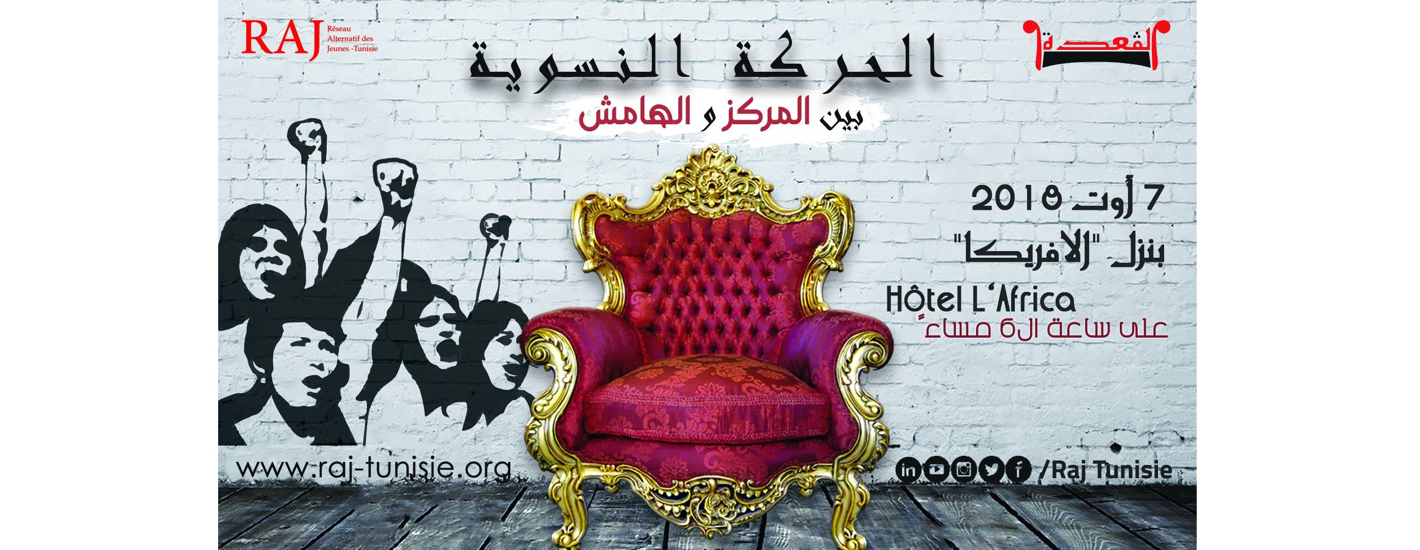 استكمالاً لسلسلة اللقاءات التي تنظّمها حول الحركات الشبابية، تدعوكم منظمة راج تونس لحضور « الڤعدة » يوم الثلاثاء 7 أوت على الساعة السادسة مساءًا بنزل الأفريكا تحت عنوان « الحركة النسوية بين المركز و الهامش »، و ذلك بحضور ضيفاتٍ من أوساطٍ مختلفة للحديث عن الحركة النسوية من مقارباتٍ شتَّى