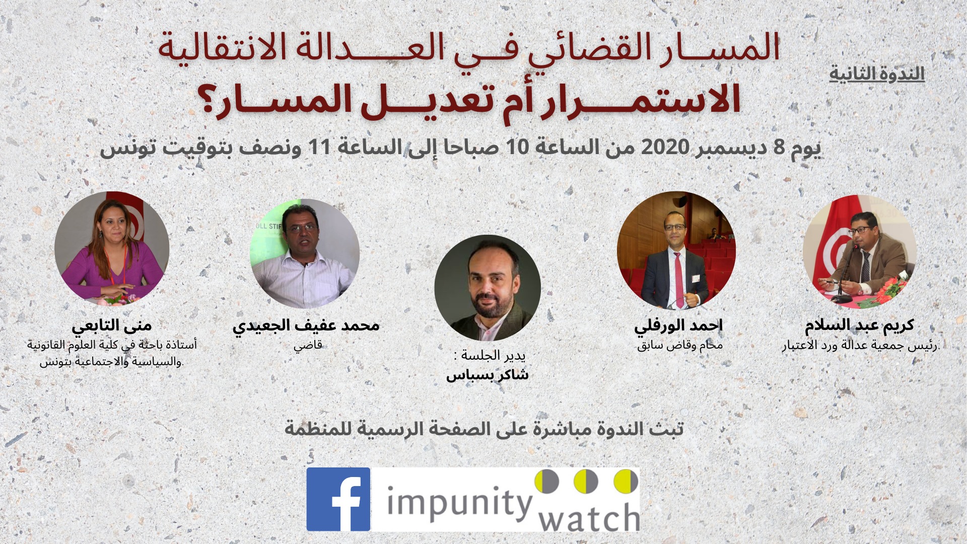 تهدف هذه السلسلة للمساهمة في فهم أسباب بطء المسار القضائي واقتراح حلول ممكنة لتداركها. وقد عملت منظمة امبيونتي واتش في هذا الصدد مع أربعة مختصين – أستاذة جامعية، محامي، قاضي، وممثل عن مجموعة ضحايا – على صياغة ورقات تقدم تصوراتهم حول المسار القضائي وكيفية إصلاحه، سيتم عرضها خلال الندوات كمنطلق للنقاش.