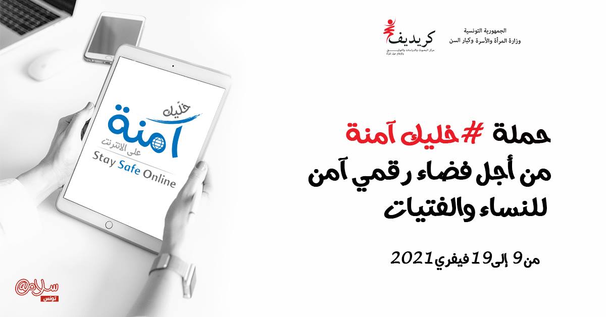 حملة « #خليك_آمنة على الانترنت » هي حملة توعوية يهدف الكريديف من خلالها إلى كسر حاجز الصمت حول هذا الشكل من العنف الذي ما فتأ يستفحل في تونس و في العالم