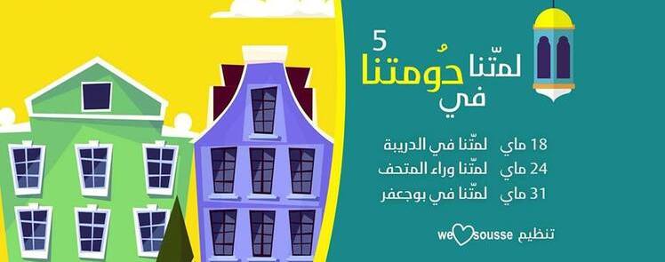 بلادنا حلوة بلادنا مزيانة بلادنا نوارة مرصعة اليوم باش نمشيو في زناقيها و في شوارعها نملاو ساحاتها و أنهجتها و هاكا علاش » لمتنا في حومتنا » قعدة في وسط المدينة و باش نعاودوا نظموها كالعادة مع جمعية سوسة غدا في ساحة الدريبة قدام دائرة المدينة بجنب دار الشرع العزيزة, شقان فطر بين ناسنا و أمالينا لمة الأحباب و الأصحاب و العيلة نهار السبت يا سادة و يا مادى 18 ماي مع السبعة و نص كل واحد يجيب عشاه و صحابو و عيلتو و يشرفنا بحضورو بش نشق فطرنا مع بعضنا و نقسمو القدمة و كل قدير و قدروا و على خاطرنا حنان على بعضنا وعلى خاطر شي ما يفرقنا و ديمة يد وحدة بش نقسمو الضحكة و الفرحة بش نزهيو لمدينة ومالا متنساوش لمتنا مع بعضنا و ربي يحننا على بعضنا و لا يقطع لمتنا