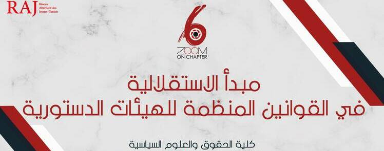 تتشرّف منظّمة راج تونس بدعوَتكم لحضُور لقاء بعنوان « الاستقلالية في القوانين المنظمة للهيئات الدستورية » و ذلك يوم 13 فيفري 2019 على الساعة 10:30 صباحاً بكلية الحقوق والعلوم السياسية بتونس ، بحضور ضيوف اكاديميين و ممثلين عن المجتمع المدني.