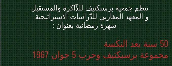 تنظم جمعية « برسبكتيف للذاكرة والمستقبل » و جمعية « المعهد المغاربي للدراسات الاستراتيجية » ندوة رمضانية بعنوان : « مجموعة برسبكتيف وحرب جوان 1967 ».
