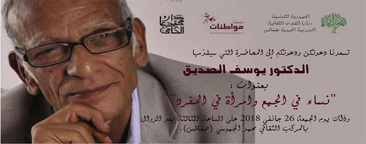 تشرفنا دعوتكن و دعوتكم لحضور محاضرة للدكتور يوسف الصديق بعنوان: » نساء في الجمع و امرأة في المفرد «