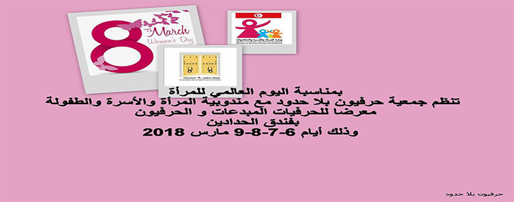 بمناسبة اليوم العالمي للمرأة تنظم جمعية حرفيون بلا حدود بالتعاون مع مندوبية المراة والاسرة والطفولة معرضا للحرفيات والحرفيون المبدعون
