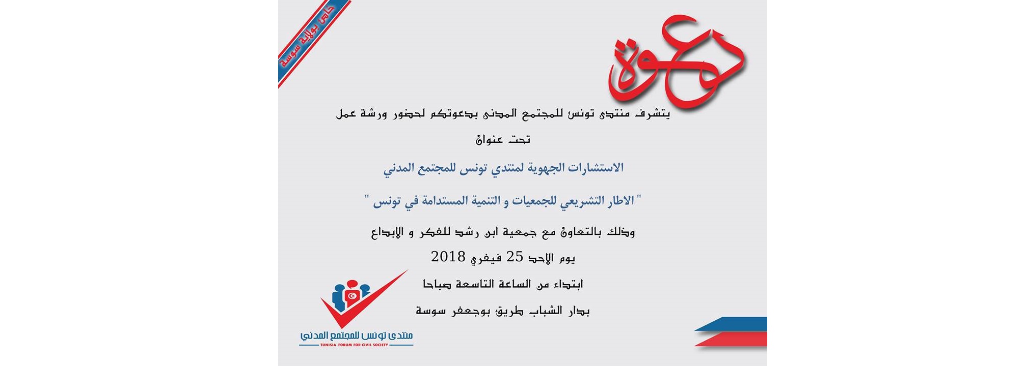 ورشة عمل لمنتدى تونس للمجتمع المدني بولاية سوسة Retour vers l'agenda