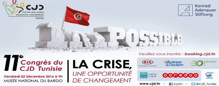 Le Centre des Jeunes Dirgeants d’Entreprises et la Konrad-Adenauer-Stiftung ont le plaisir de vous inviter au 11e Congrès du CJD Tunisie sous le thème :