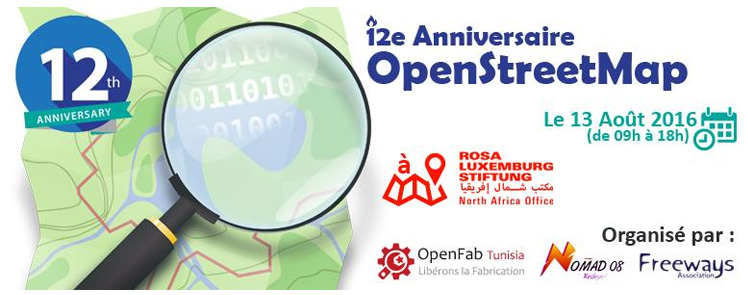 Pour fêter le 12e anniversaire de OpenStreetMap, l’association OpenFab Tunisia, en partenariat avec les associations Freeways et Nomad08, organisent une journée qui a pour objectif de promouvoir et encourager l’utilisation cet outil de cartographie alternatif et libre.