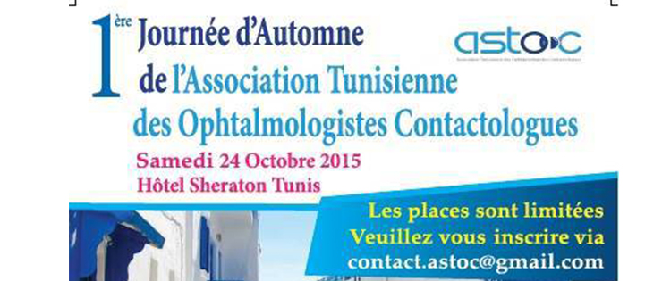 La STO félicite vivement les membres de l’ASTOC pour la création de leur société savante dont le but est de promouvoir le développement de la contactologie et de participer activement à la formation médicale continue des ophtalmologistes tunisiens dans le domaine des lentilles de contact et vous transmet l’affiche de leur première journée d’automne qui se tiendra le 24 octobre 2015 à Tunis