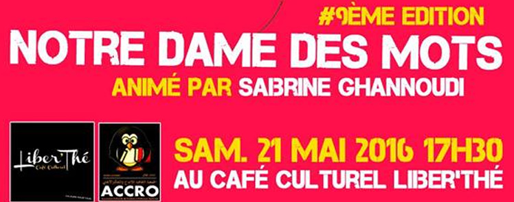 Notre Dame Des Mots est un événement mensuel qui donne l’occasion aux écrivains femmes de réciter leurs textes en public sur la scène du Café Culturel Liber’Thé.