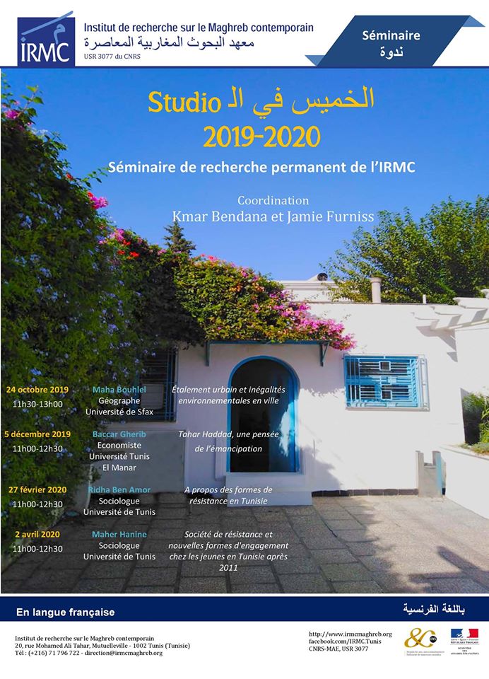 27 février 2019, 11h, Institut de Recherche sur le Maghreb Contemporain (IRMC) : « A propos des formes de résistance en Tunisie ».
