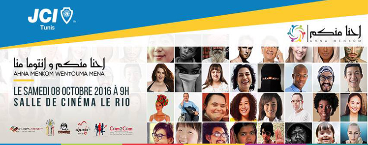 La Jeune Chambre Internationale de Tunis en partenariat avec l’association jeunes artistes et l’association Mnemty a l’honneur de vous convier à son événement intitulé « Ahna_Menkom » qui se tiendra le samedi 08 octobre 2016 à partir de 9H à la salle de cinéma Le Rio au centre-ville de Tunis.