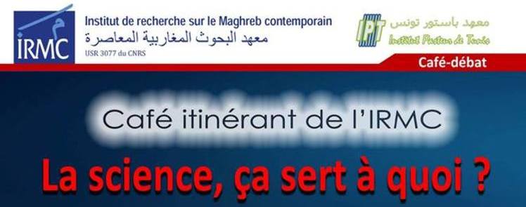 Café itinérant de l’IRMC coorganisé par l’Institut de Recherche sur le Maghreb Contemporain (IRMC) et l’Institut Pasteur de Tunis – معهد باستور تونس avec les interventions de Rym Halouès (doctorante en sociologie à la FSHST associée à l’IRMC) et de Cyrine Bouabid (doctorante en biologie, association des jeunes chercheurs de l’Institut Pasteur de Tunis).