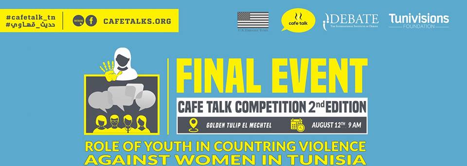The International Institute of Debate, the US embassy Tunis and Tunivisions Foundation are honored to invite you to the final event of the second edition of the Cafe Talk Competition that will be held in Golden tulip el Mechtel on August 12th starting from 9a.m