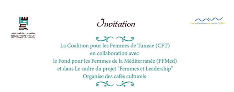 Dans le cadre du projet « Femmes et Leadership » financé par le Fond pour les Femmes de la Méditerranée (FFMed), et dans l ‘esprit de la continuité, la visibilité du projet et le renforcement des capacités des participantes, la Coalition pour les Femmes de Tunisie (CFT) organise des CAFES CULTURELS Ramadanesques dans un cadre convivial .
