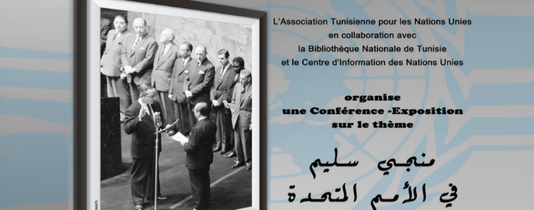 A l’occasion de la Journée des Nations Unies, l’ Association Tunisienne pour les Nations Unies – ATNU organise avec la BIBLIOTHEQUE NATIONALE DE TUNISIE دار الكتب الوطنية , le Centre d’Information des Nations Unies et le Bureau du Coordonnateur Résident des Nations Unies en Tunisie, une conférence-exposition sur le thème : Mongi Slim aux Nations Unies.