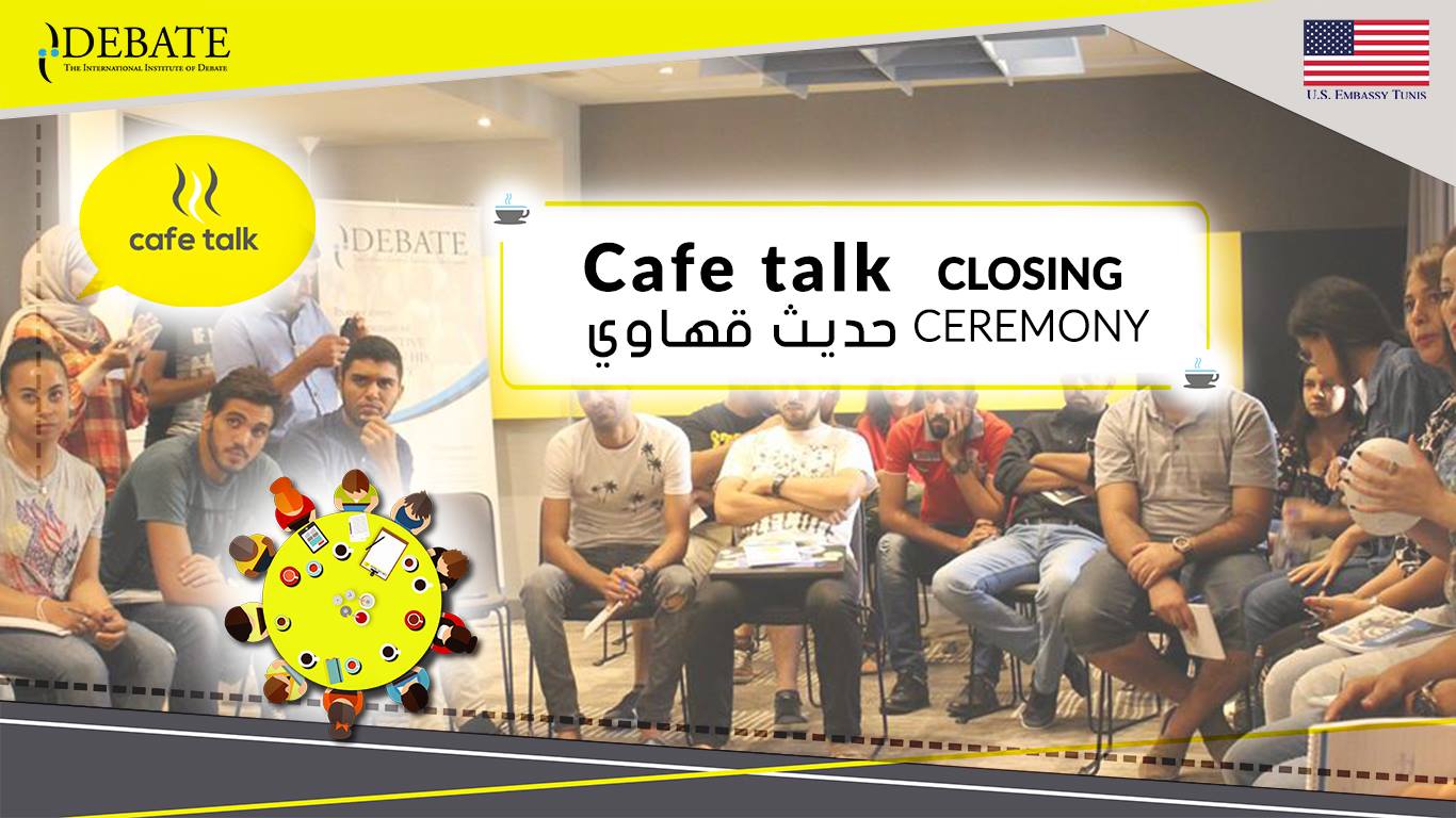 “International Institute of Debate” et l’ambassade Américaine en Tunisie ont le plaisir de vous inviter à la cérémonie de clôture du programme “Café Talk” et ce le 28 Septembre à l’espace l’Arena Lac I à partir de 19h jusqu’à 21h.