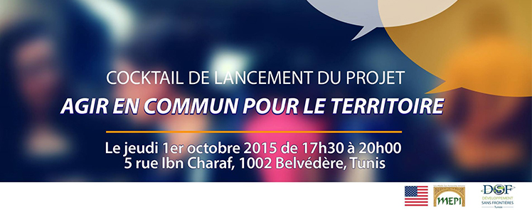 DSF Tunisie, en partenariat avec le MEPI organise le jeudi 1er octobre 2015 à 17h30, un cocktail de lancement du projet « Agir en Commun pour le Territoire ».