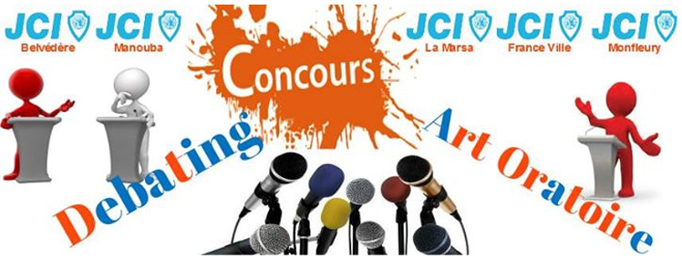 La JCI Belvédère, Manouba, La Marsa, France ville et Montfleury ont l’immense plaisir de vous inviter à leur concours « Art Oratoire & Debating ». Et ceci le dimanche 27/03/2016 à 09h à la Maison de la Culture Ibn Zaydoun Omrane.