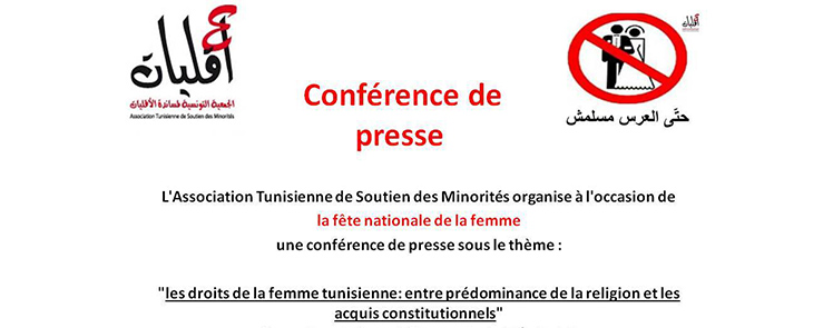 A l’occasion de la fete nationale de la femme L’Association Tunisienne de Soutien des Minorités organise une conférence de presse ce 13 août 2016 à 12h00 à Hotel Golden Tulip EL MECHTEL