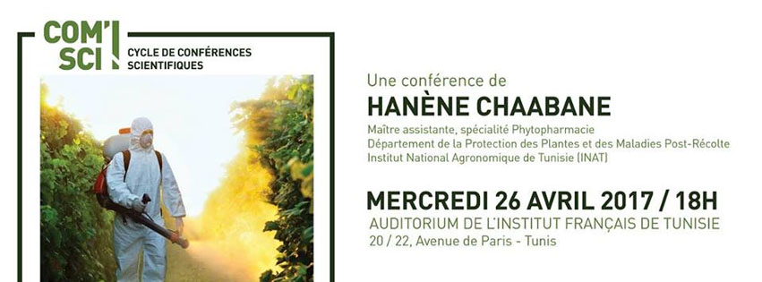 Pour cette troisième rencontre, l’Institut Français de Tunisie recevra comme invitée Pr. Hanène Chaabane Boujnah qui animera une conférence sur le thème « Pesticides : protection des plantes ou danger pour les consommateurs », le mercredi 26 avril à 18h.