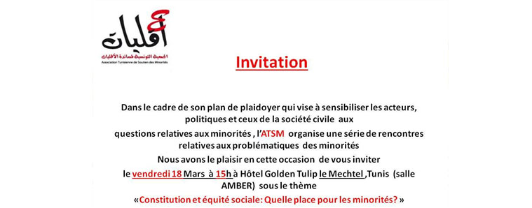 questions relatives aux minorités , l’ATSM organise un séminaire sous le thème «Constitution et équité sociale: Quelle place pour les minorités? »
