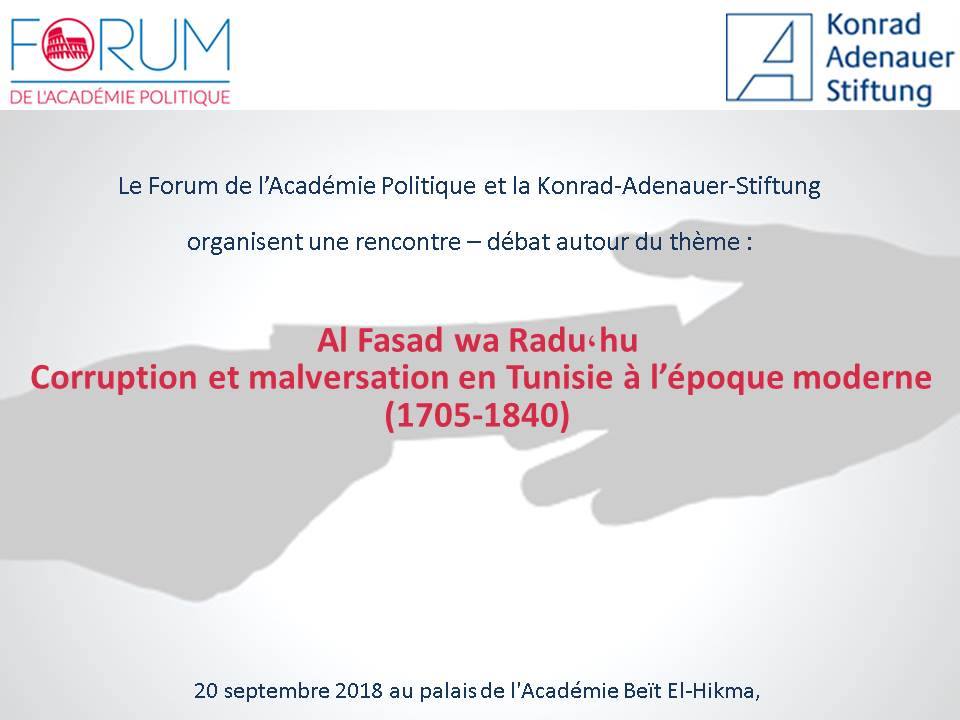 Ainsi, al fasad, la corruption et la malversation posent les questions fondamentales des rapports entre le pouvoir et la richesse, entre le public et le privé. Par ailleurs, la dénonciation du Fasad fut bien un instrument de lutte politique au service d’un régime politique (le beylik en Tunisie) qui dans certains cas encouragea le recours à des solutions autoritaires radicales au nom de la lutte contre al Fasad. La répression et la condamnation du Fasad exercées par les agents du beylik, avaient néanmoins permis de renflouer les caisses de l’Etat.