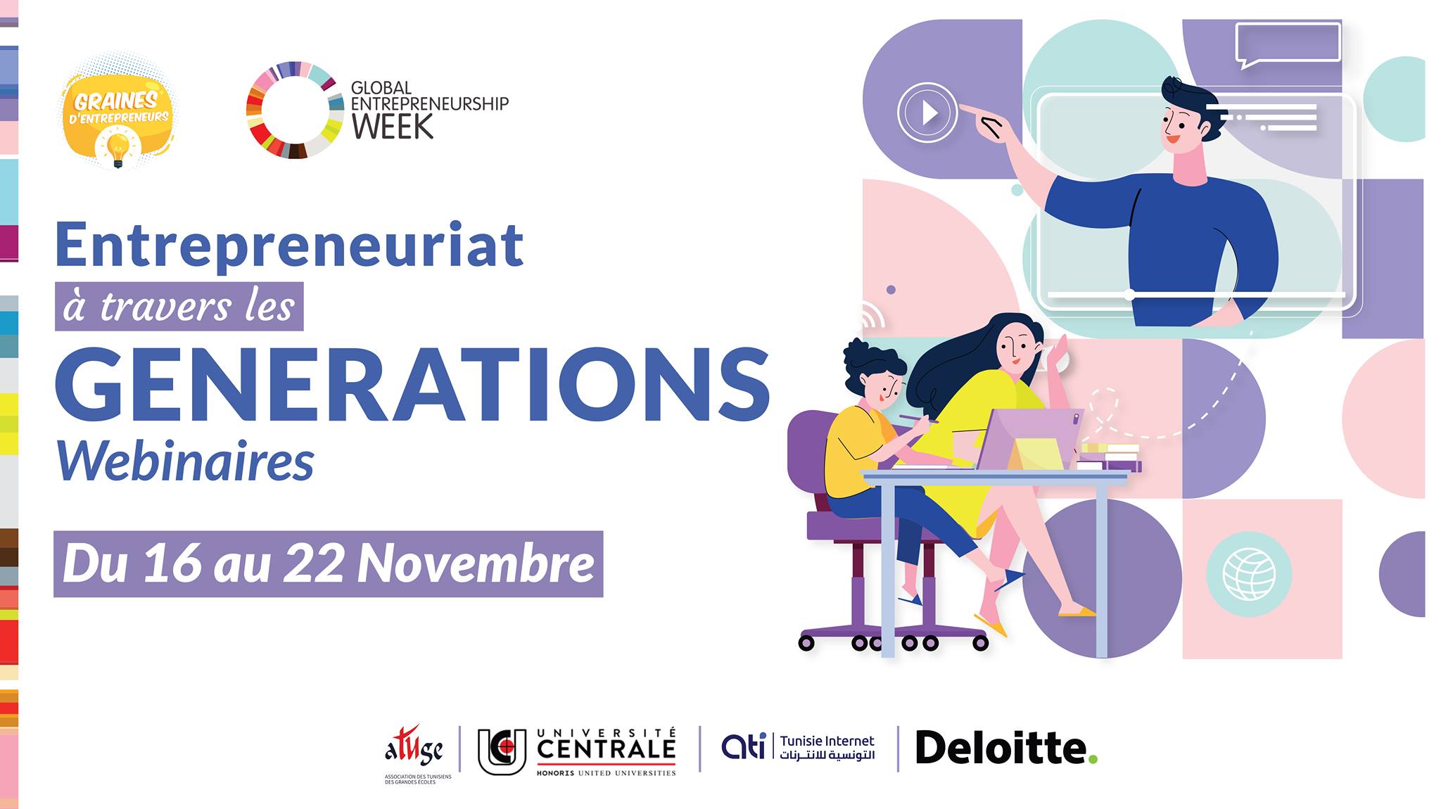 En partenariat avec L’ATUGE, l’Université Centrale, Deloitte et l’ATI, Graines d’Entrepreneurs fête la Semaine Mondiale de l’Entrepreneuriat (SME) qui se tiendra du 16 au 22 Novembre 2020.