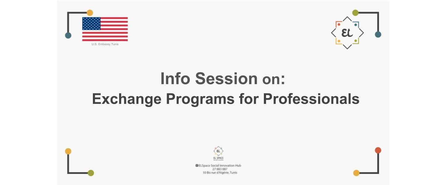 Please join us for a special information session about exchange programs for professionals including public servants, entrepreneurs, NGO leaders, professors, and others. The session will be led by the Embassy’s Cultural Affairs Specialist and will include a narrated slide show, Q&A, and testimonials from well-established alumni. Join us at El Space on June 29 from 5 to 7pm to find your opportunity! Learn more about U.S. Embassy Tunis exchange opportunities here: https://tn.usembassy.gov/education-culture/exchange-programs