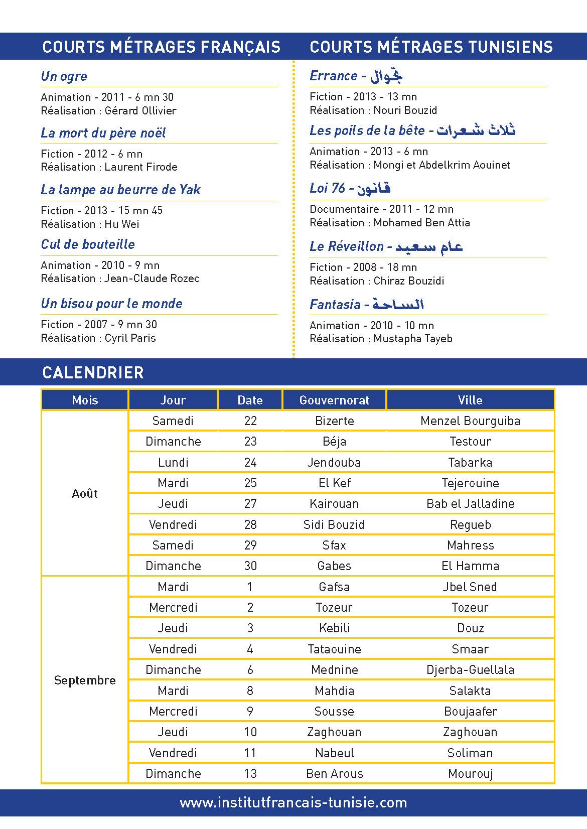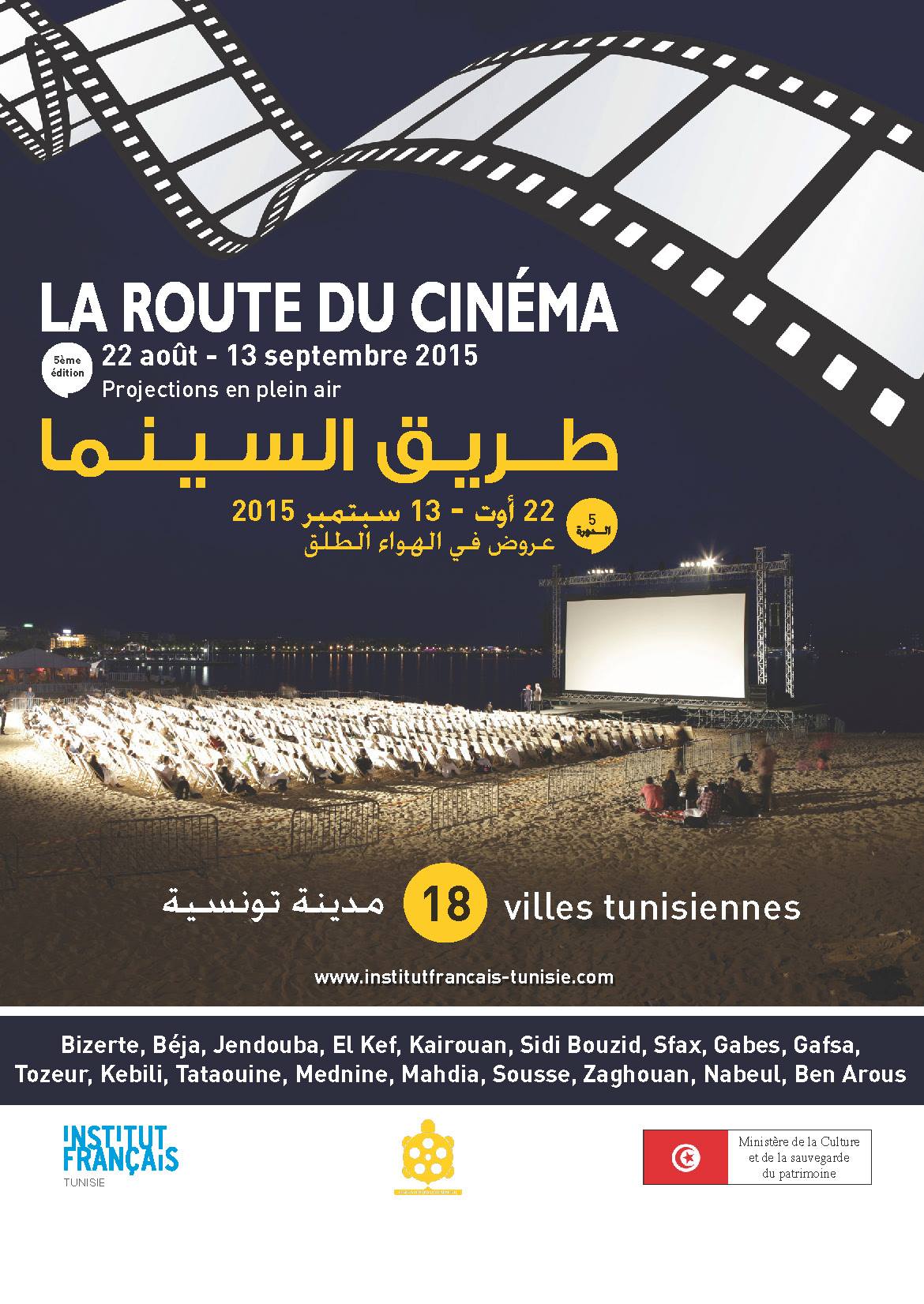 L’Institut français de Tunisie et le Ministère de la Culture ont le plaisir de vous inviter une fois de plus à venir vous retrouver en famille et entre amis autour de cette nouvelle édition du Festival de la Route du Cinéma.