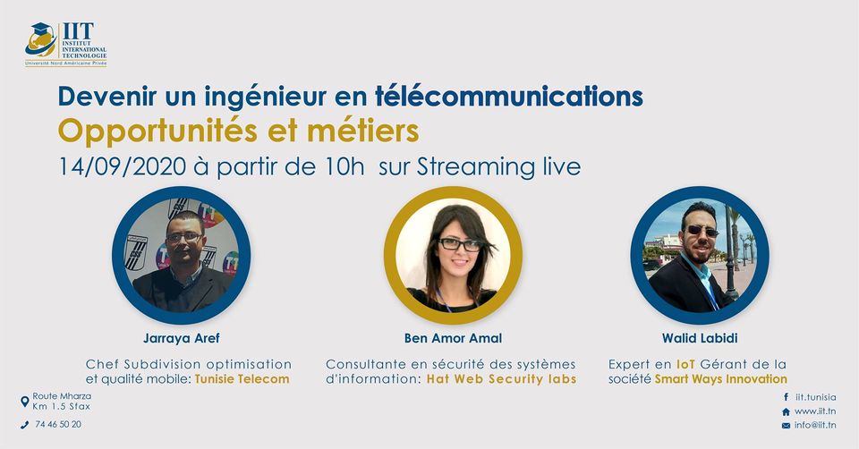 L’#IIT organise une conférence en ligne intitulée « Dévenir un ingénieur en Télécommunications : Opportunités et métiers » avec l’intervention de :