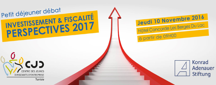 Le Centre des Jeunes Dirigeants d’Entreprise et la Konrad-Adenauer-Stiftung organisent, le 10 novembre 2016 à l’Hôtel Concorde – Les Berges du Lac à partir de 9h, un petit déjeuner débat sous le thème :