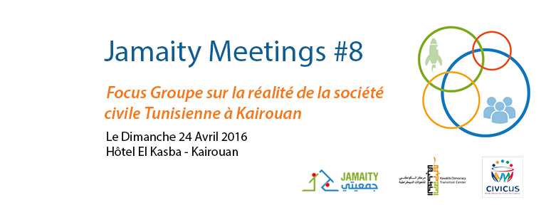 Cet édition de Jamaity Meetings #8 sera réalisé dans le cadre de l’étude sur la réalité des associations en Tunisie réalisée par le Centre KAWAKIBI , en collaboration avec la fondation Civicus: World Alliance for Citizen Participation.