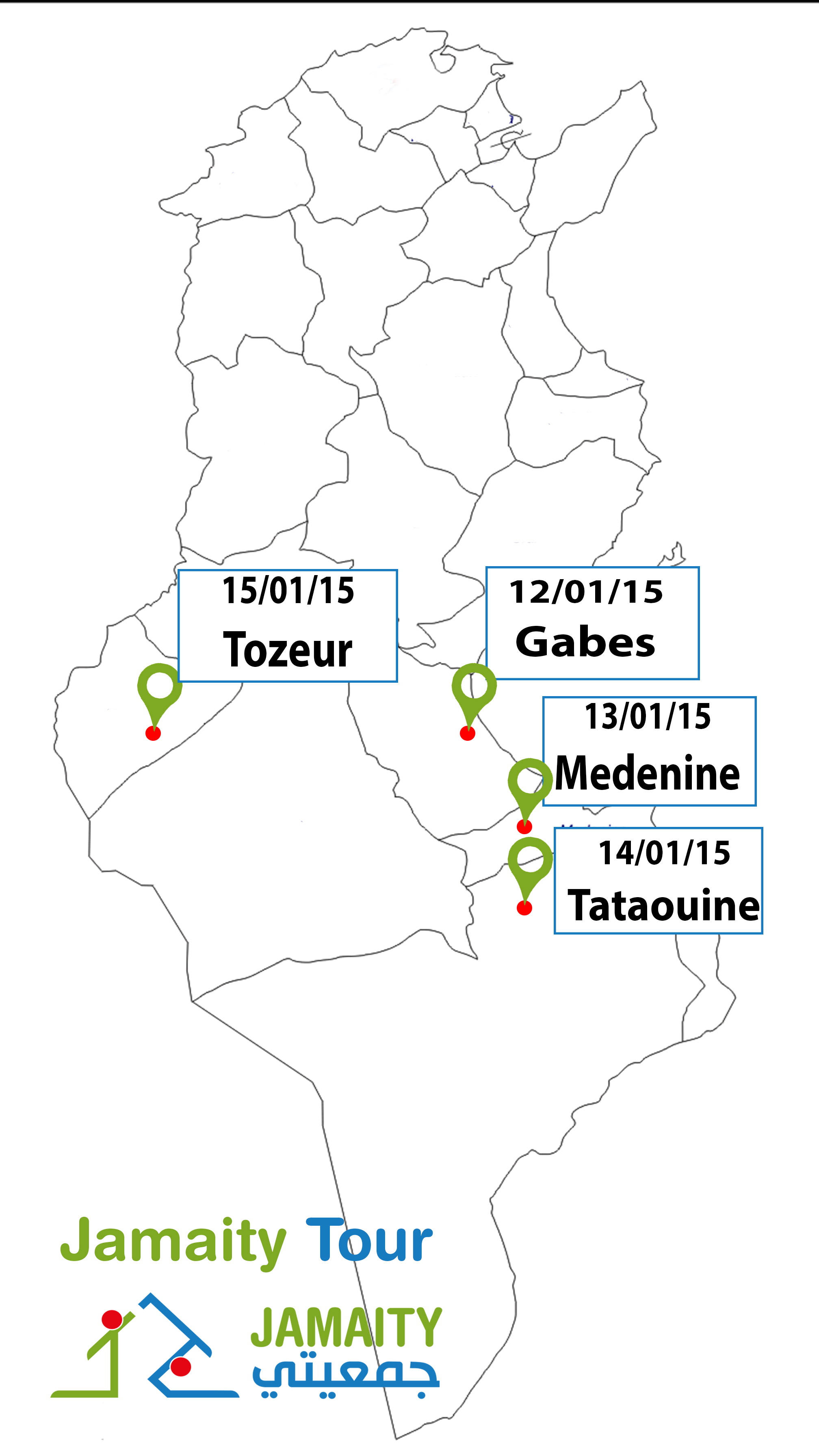 Dans le cadre des ces activités, Jamaity se prépare à visiter le sud ( Gabes, Medenine, Tatouine, Tozeur) afin de rencontrer les associations et les acteurs de la société civile dans la région.