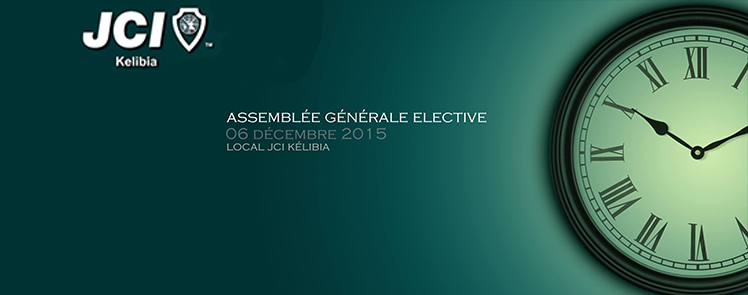 La Jeune Chambre Internationale de Kélibia a l’immense plaisir de vous inviter à assister au déroulement des travaux de son Assemblée Générale Élective, qui aura lieu, le Dimanche 06 Décembre 2015, au Local de JCI Kélibia à 10h.