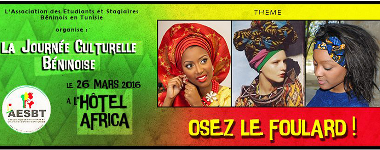 Dans le but de vouloir faire connâtre la culture béninoise en Tunisie , l’Association des Etudiants et Stagiaires Béninois en Tunisie , organise une journée culturelle Béninoise ce Samedi 26 Mars 2016 à l’hôtel Africa .