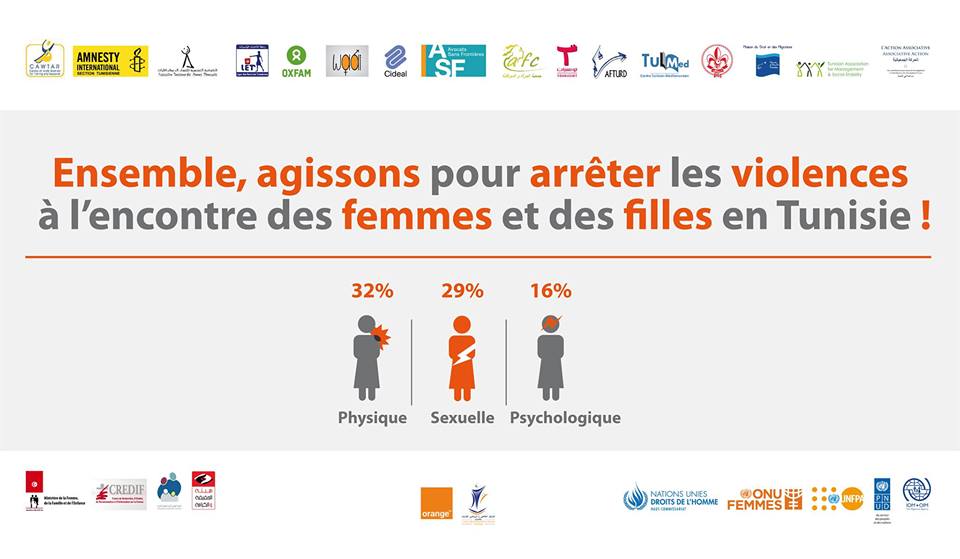 Listes des organisations participantes : Avocats sans Frontières (ASF), Tunisian Association of Management and Social Stability (TAMSS), Association Tunisienne des Femmes Démocrates (ATFD), Association des Femmes Tunisiennes pour la Recherche sur le Développement (AFTURD), Centre de la Femme arabe pour la Formation et la Recherche (CAWTAR), Association WAAI, Association Femme et Citoyenneté (AFC), Fondation CIDEAL, Amnesty International section Tunisie, OXFAM Maghreb, Maison du droit et des migrations, Tounissiet, Ligue des Electrices Tunisiennes (LET), Centre Tu-Med, Organisation Internationale des Migrations (OIM).
