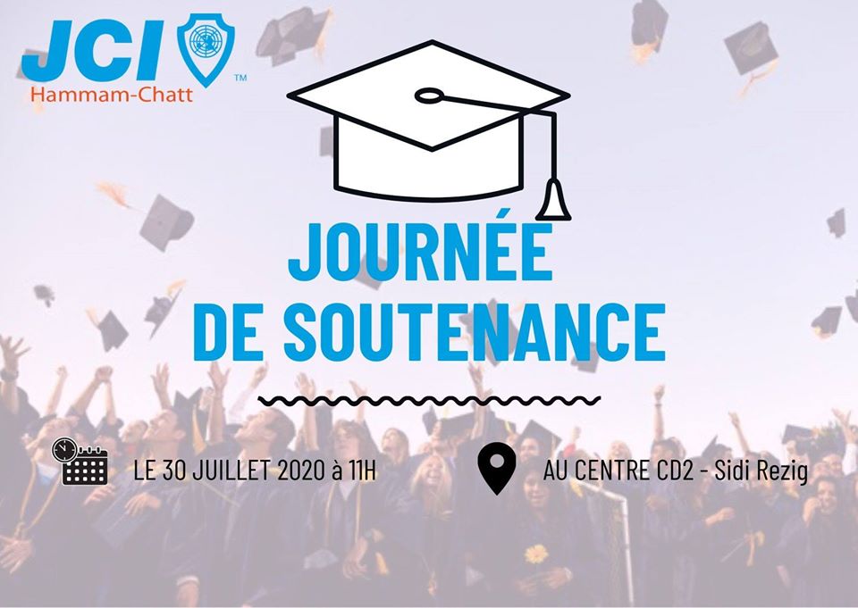 La jeune chambre économique de Hammam Chatt organise LA JOURNEE SOUTENANCE afin de vous aider dans votre journée exceptionnelle, et ce le 30 Juillet 2020 au centre CD2 Sidi Rzigue.