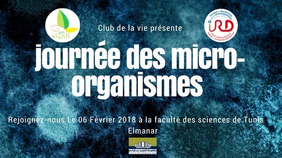 •La « Journée des Micro-organismes » est un événement scientifique sous le cadre de Microbiologie organisé par CLUB DE LA VIE en collaboration avec l’Institut de recherche pour le développement (IRD) le 6 Février à la Faculté des Sciences de Tunis de 9h à 14h .